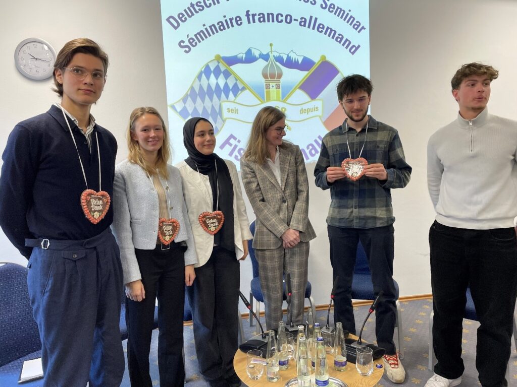 Jedes Jahr findet Ende Januar in Fischbachau das deutsch-französische Seminar statt, das von der Bayerischen Staatskanzlei organisiert wird. Dort treffen sich Verwaltungsbeamte verschiedener bayerischer Behörden mit Politikern und Abgeordneten beider Länder, in Anwesenheit von Vertretern des französischen Generalkonsulats und des Institut Français. Am letzten Tag der dreitägigen Veranstaltung findet stets eine Podiumsdiskussion mit 5 bayerischen Abibac-Schülern statt. Dieses Jahr vertrat hier die Abibac-Schülerin Zoé Dufour, Q12, das Dante-Gymnasium. Moderiert von der ARD-Korrespondentin Barbara Kostolnik diskutierten die angehenden Abiturienten auf Französisch Fragen zum Thema „Krieg und Frieden in Europa im 21. Jahrhundert“. Vor dem Hintergrund des russischen Angriffskriegs auf die Ukraine rücken die Schrecken eines militärischen Konflikts näher an unser Land heran, und die Jugendlichen äußerten ihre Befürchtungen, aber auch ihre Hoffnung auf einen baldigen Frieden eindrucksvoll vor einem aufmerksamen Publikum. Im Anschluss daran lauschten sie den besorgniserregenden Ausführungen der Politologin Cécile Marangé von der Pariser Universität Sorbonne, die darauf aufmerksam machte, dass durch hybride Kriegsführung mittels der sozialen Medien eine Destabilisierung der europäischen Bevölkerung herbeigeführt werden könnte. Die Abgeordneten Reinhard Brandl, MdB, und Frédéric Petit, Assemblée nationale, bekräftigten diese These durch eigene Beobachtungen der aktuellen Sicherheitslage. Abschließend richteten sie dennoch ermutigende Worte insbesondere an die Jugendlichen im Saal und forderten sie auf, die Werte der Demokratie und die Freiheit Westeuropas im Dialog und besonders in der Begegnung von Franzosen und Deutschen zu verteidigen und die Freundschaft zwischen beiden Nationen zu stärken.