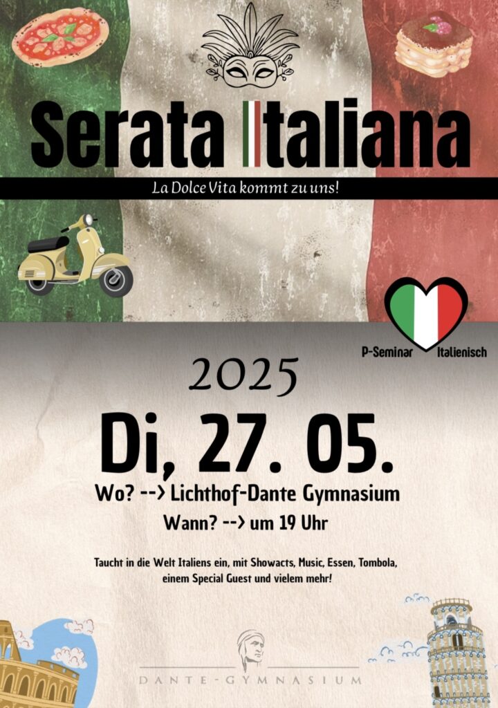 Dante meets dolce vita: Showacts, Musik, Buffet, Tombola & Special Guest – ein Abend voll italienischem Flair, Genuss und guter Laune. Kommt vorbei und feiert mit!